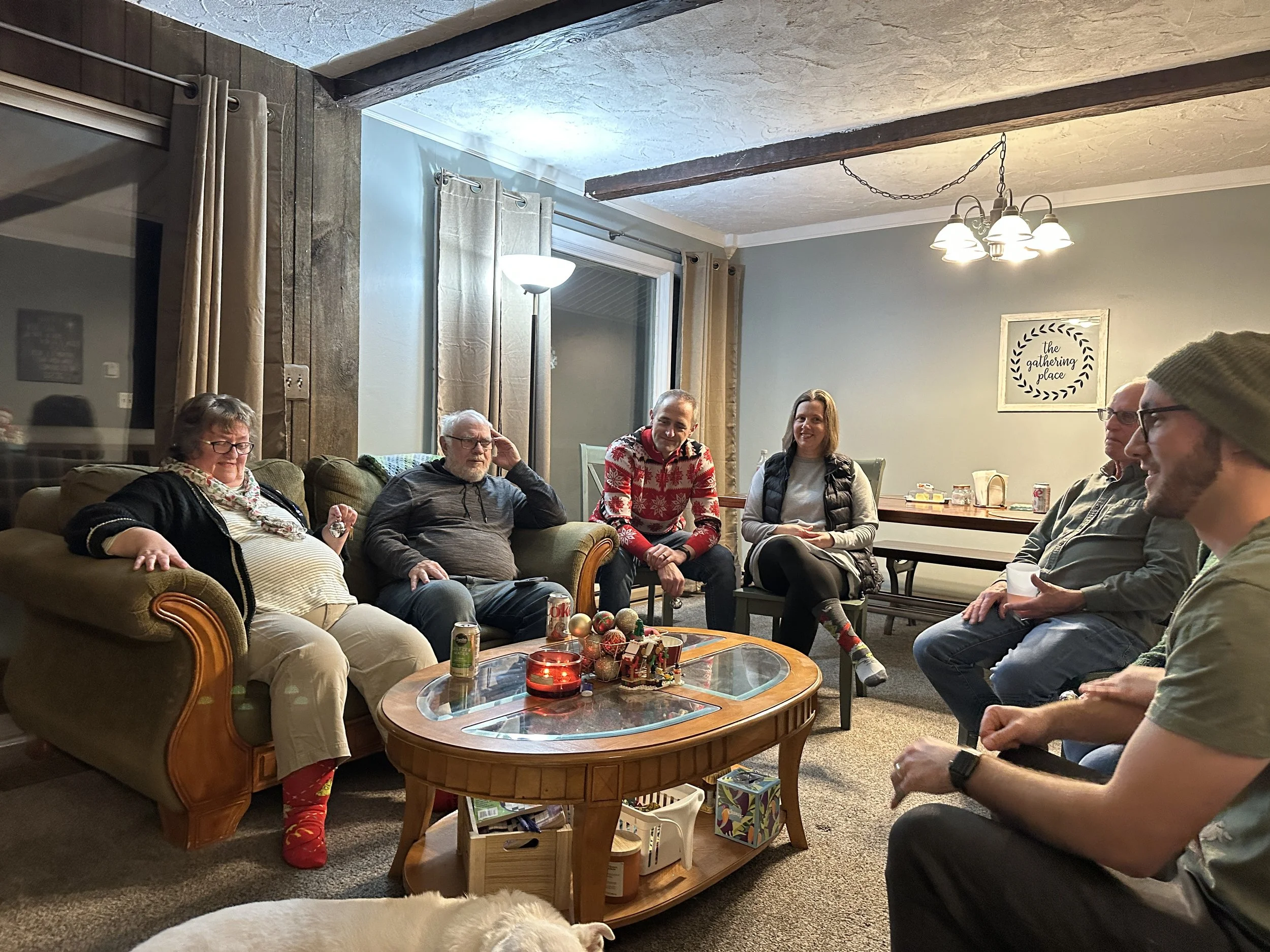 Our small group joined with another small group for caroling at the Barre Gardens, a local nursing home. Both small groups made ornaments to pass out to the residents, and they appreciated that as well as the music.